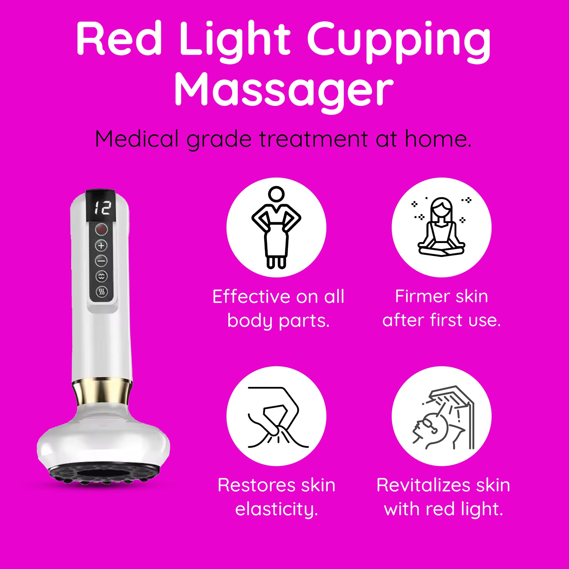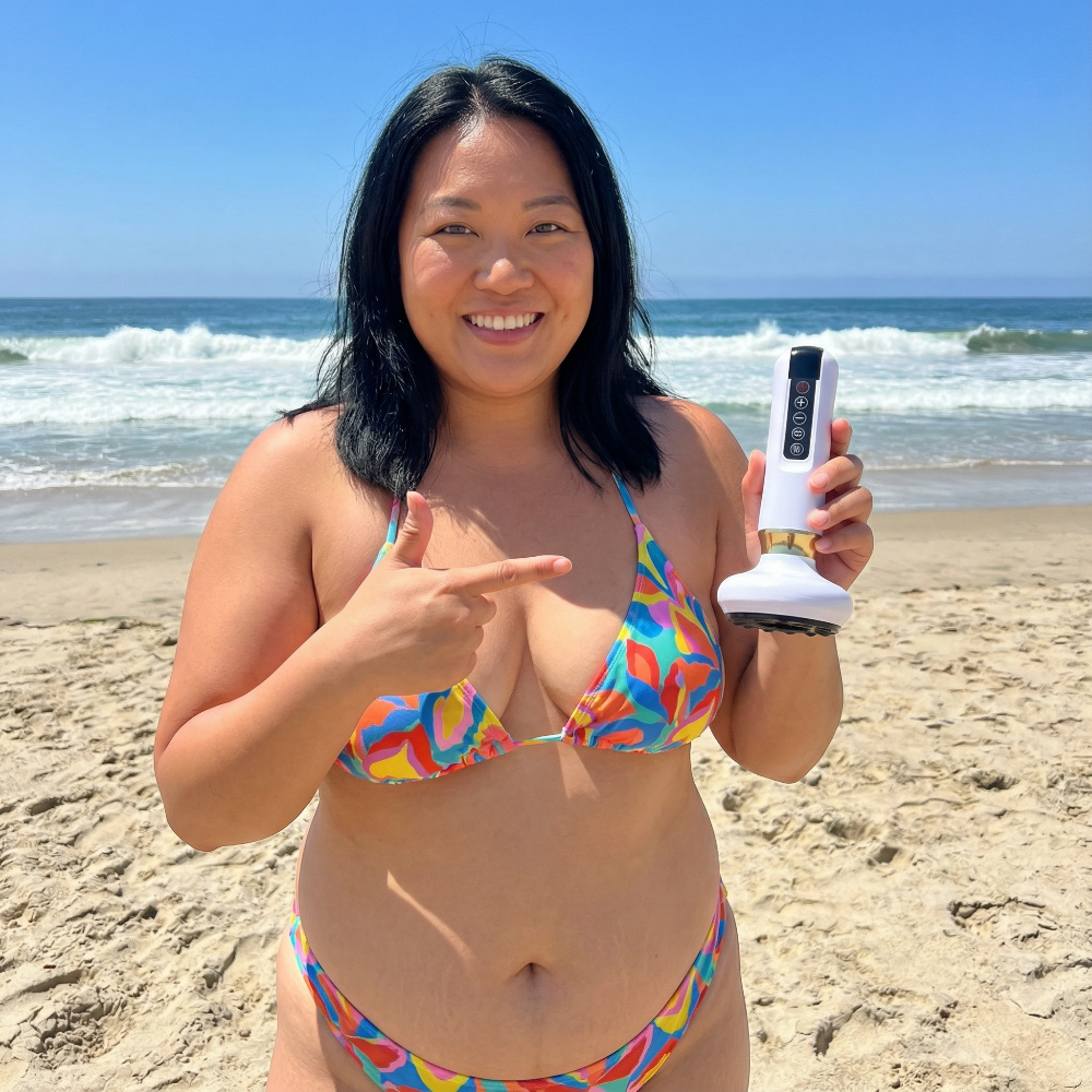 The massager combines professional-grade treatments into one easy-to-use portable device for at-home convenience. It utilizes a synergy of red light therapy, infrared heat, adjustable cupping suction, and scraping techniques—commonly used to reduce cellulite and improve skin elasticity. These methods work together to target stubborn cellulite, boost circulation, and rejuvenate your skin while allowing you to adjust suction levels for optimal comfort.