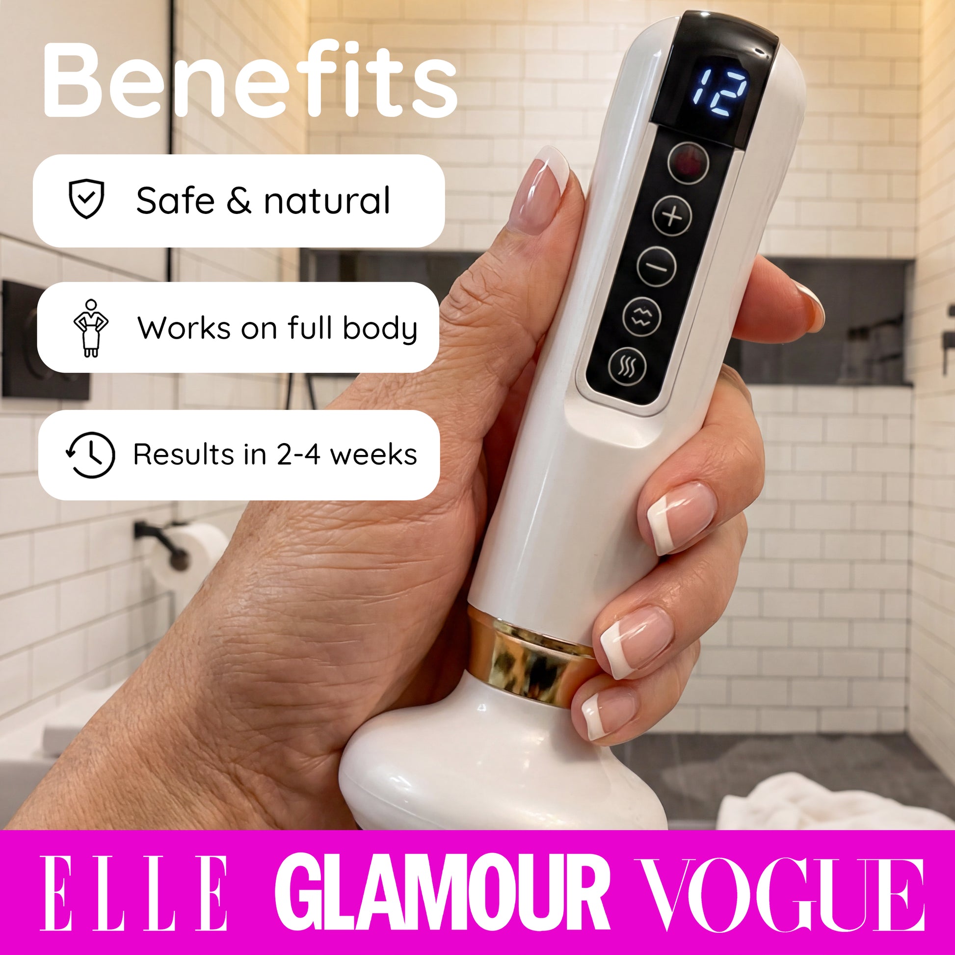 Levels 9-12 is for experienced users who need intensive treatment. These settings deeply penetrate the skin to significantly reduce the appearance of cellulite, stimulate collagen production, and smooth out even the most persistent skin irregularities