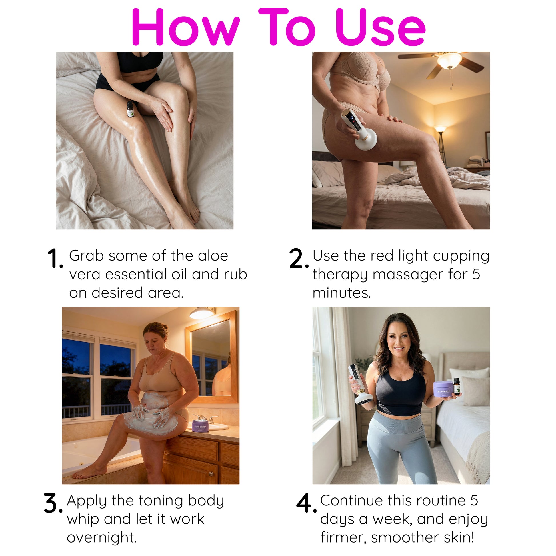 Step 3. Apply body whip nightly to targeted area.