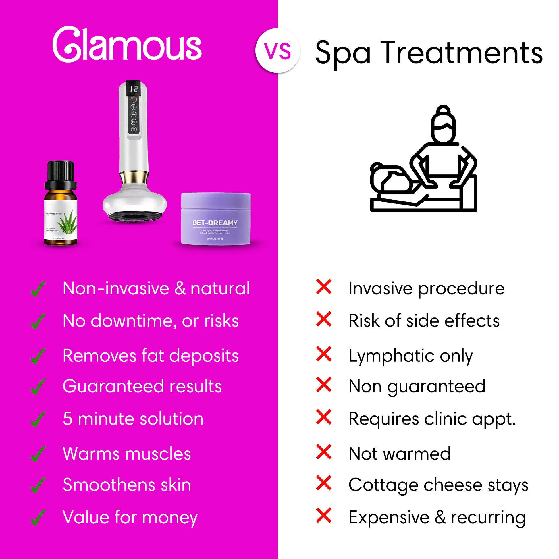 Yes! It’s important to apply a light layer of the Glamous Essential Oil before using the device. This ensures smoother gliding, reduces friction, and enhances the effectiveness of the treatment while keeping your skin nourished. Using oil also helps prevent bruising and improves overall comfort.