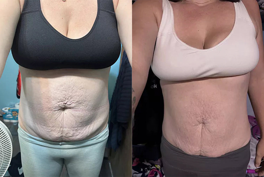 "After I had 3 kids, my weight got away from me and the purple stretch marks were the worst on my stomach. I tried the She's Sculpted Set and I felt immediately better. By the end of month 1, I didn't even recognize myself in the mirror."